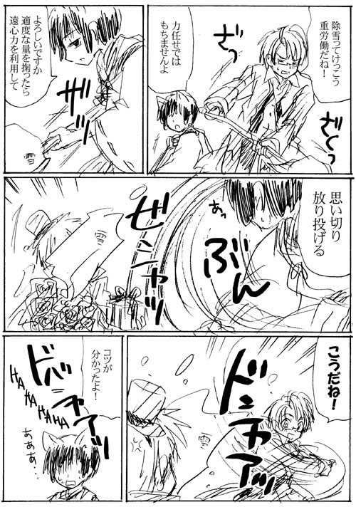 年末から年明けにかけてあまりの大雪が続いたんで、ドカ雪のコノヤローという気持ちを込めてみました。実は除雪はそんな嫌いな作業じゃないんですが(時間に追われてる時は別ですが)、あまり多いとな・・・。