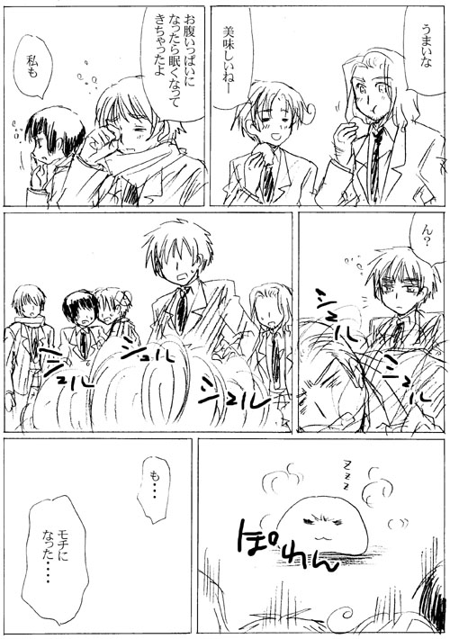 仏日をまとめようかなーアップしてない分も何枚かあるし・・・と思ってPC開いたら、御本家のまさかのもちスペシャルに興奮した勢いで描いてみたうる星パロです。