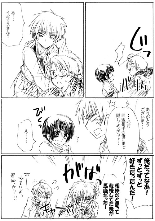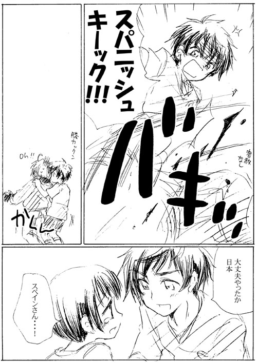 親分と日さんの続きは間置かないで描いてしまいたいんだけどちょっと時間取れないかもしれないんで、こんなんなるよ的なものを載せてみます。ダイジェストじゃなくてお遊びですんで、軽く流していただければ幸いです。