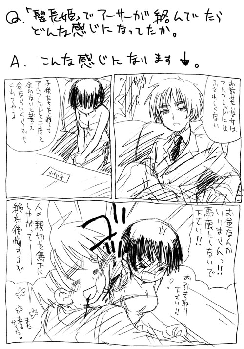 あとは髪長姫のアーサー絡みネタでラクガキ。