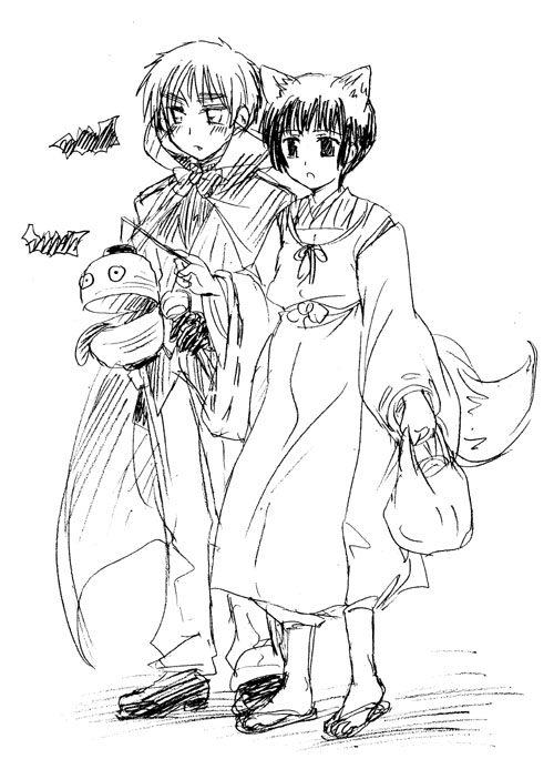 米日、英日でハロウィン小話です。でも御本家様の素敵衣装を拝見する前にボンヤリ描いたものなので(衣装は後で描き直した)、ハロウィンリベンジしたい。特に白狐見てから激しく思ってます。おきつねさん白いといいなあなどと思ってはいましたが、夢って願えば叶うんですね・・・!!御本家様のサービス旺盛っぷりが激しすぎて拝みたい。